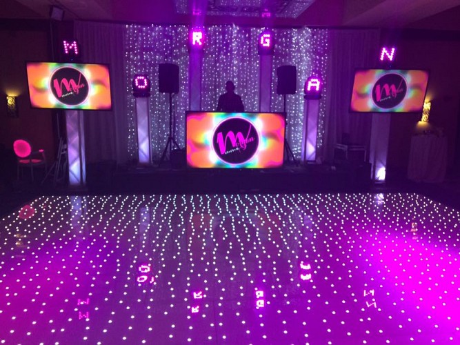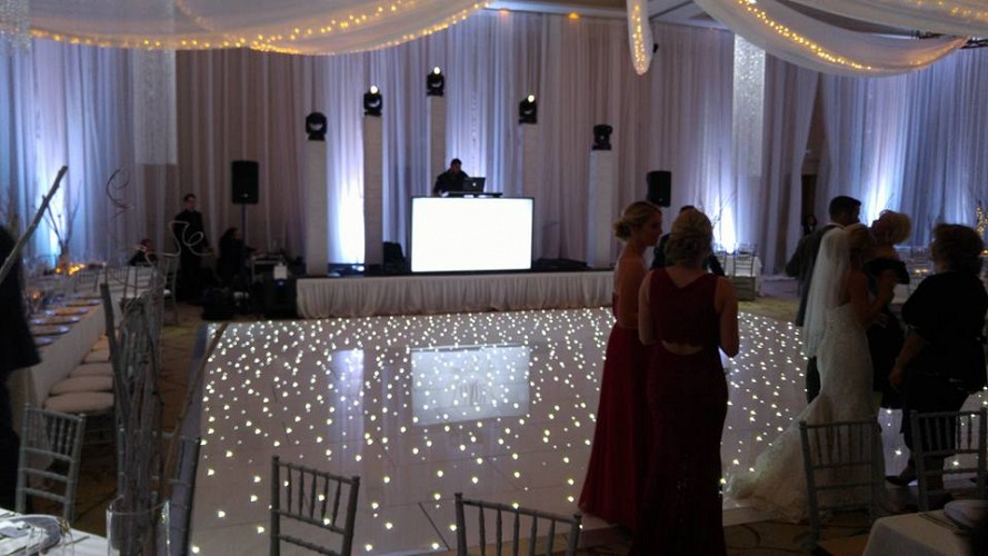 Our stunning starlit dance floor is a brilliant polished white, with hundreds of twinkling, controllable LEDs embedded in it. Our dance floor has white LEDs, and RGB twinkles too.